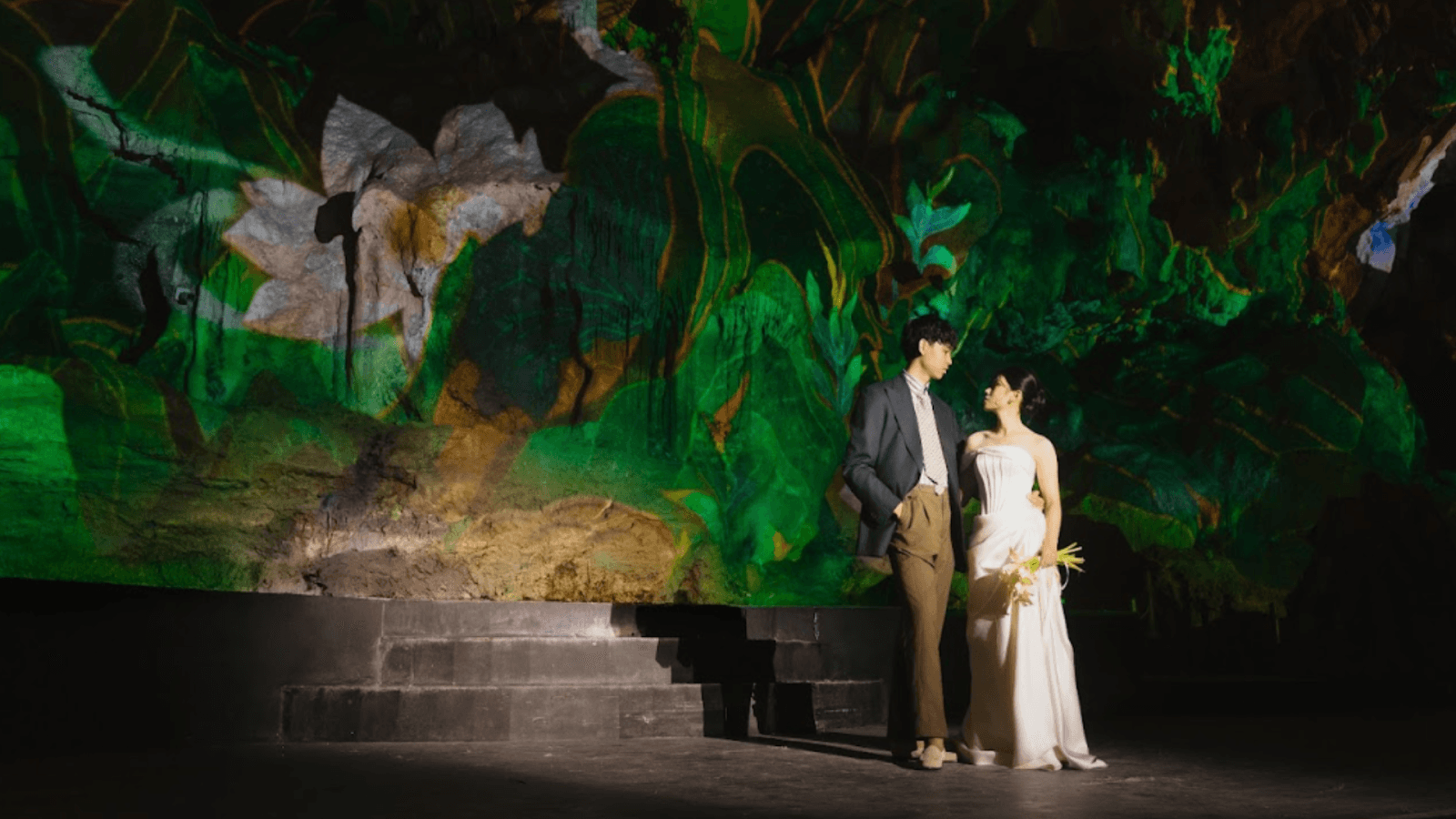 Tại Hang Ngọc Rồng, sự kết hợp giữa không gian di sản và yếu tố tâm linh tạo nên một bối cảnh nơi lời thề hôn nhân trở nên trọn vẹn một cách tự nhiên. Cặp đôi dâu rể không chỉ trao lời hứa cho nhau, mà còn gửi gắm mong ước về một đời sống hôn nhân viên mãn, bền vững và được bảo hộ về mặt tinh thần – như một sự khởi đầu được nâng đỡ bởi cả không gian, lịch sử và niềm tin nội tại.