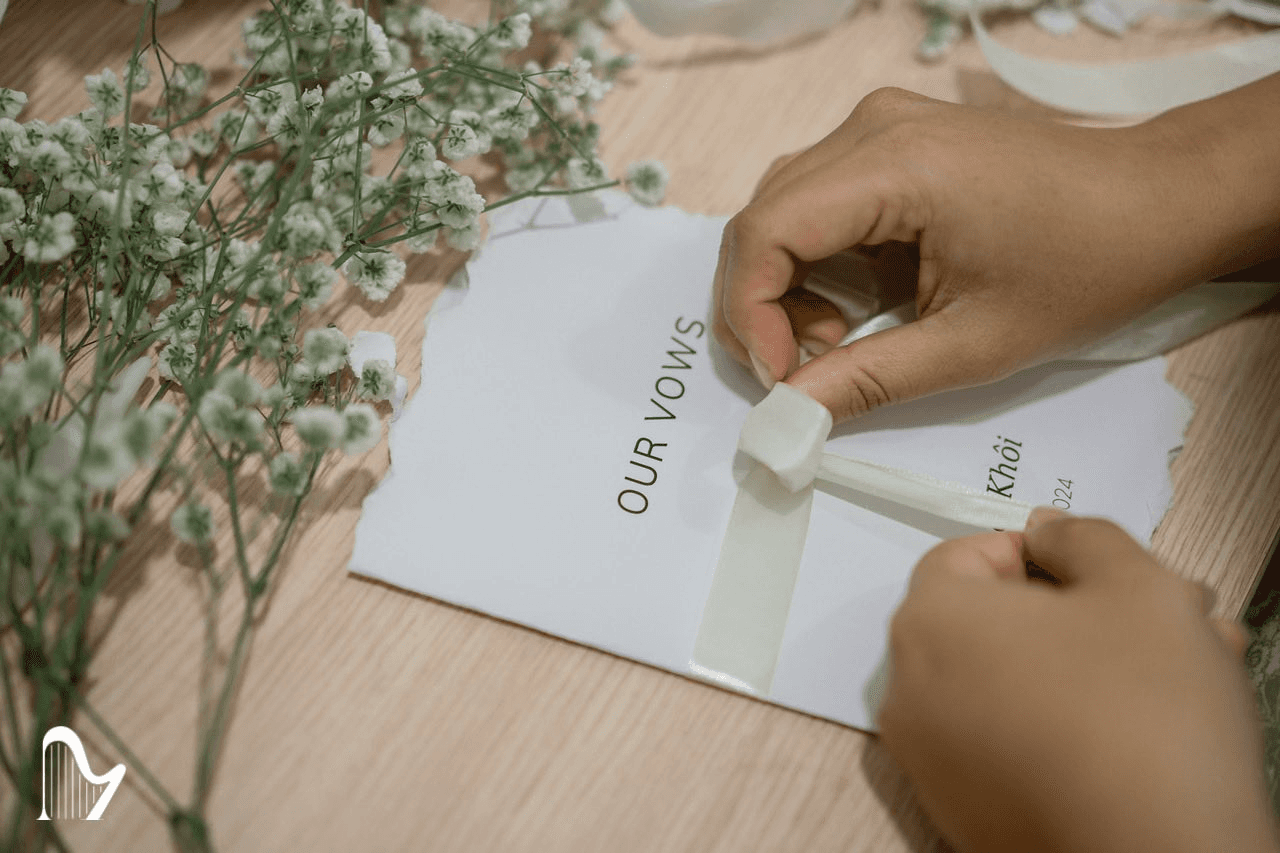 Trong một lễ cưới, wedding vows thường là phần giàu cảm xúc nhất. Những lời nói có thể không trau chuốt về ngôn từ, nhưng xuất phát từ trải nghiệm thật và cảm xúc thật, khiến không khí buổi lễ trở nên gần gũi và chân thành. Chính sự mộc mạc này tạo nên sức lay động mạnh mẽ, giúp khoảnh khắc trao lời thề trở thành điểm nhấn khó quên của hôn lễ.